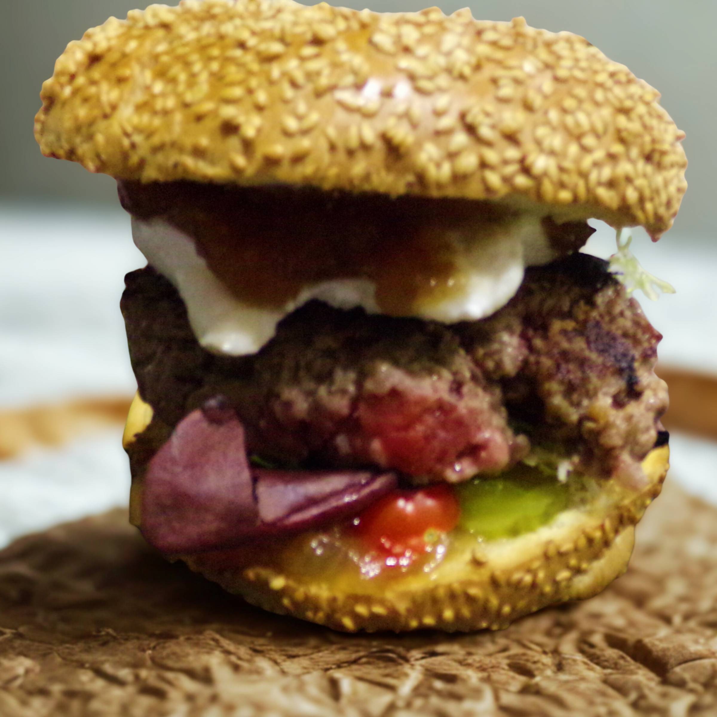 Burger Sud Ouest : Pain burger, Magret, Salade, Tomate, Echalotte, Confit d'oignon 28€